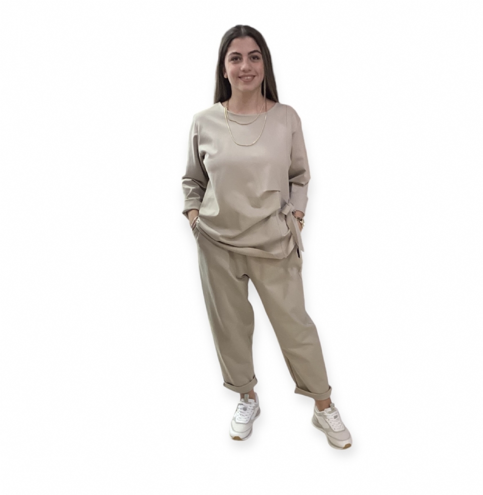 Σετ ασύμμετρη μπλούζα και παντελόνι baggy Beige