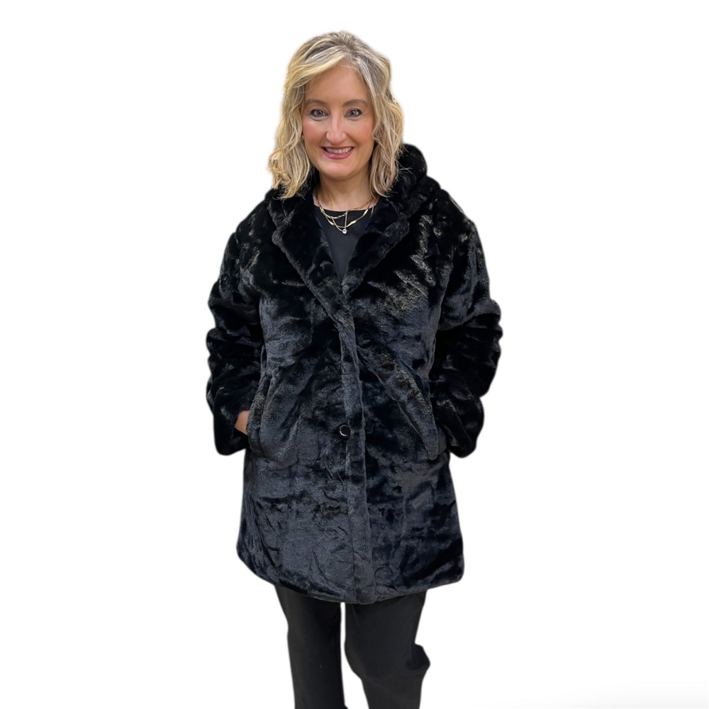 Verde Κοντό Γούνινο Παλτό με κουκούλα 33-0692 Black : 1