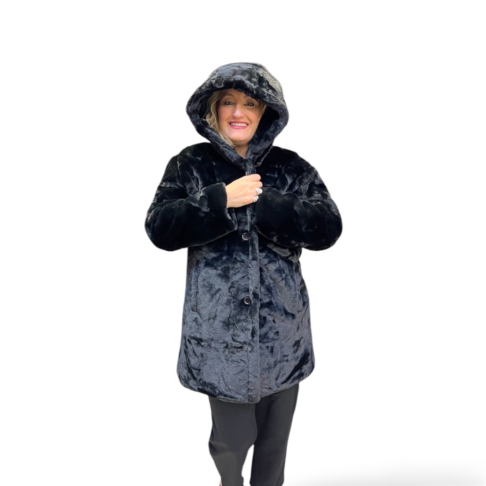Verde Κοντό Γούνινο Παλτό με κουκούλα 33-0692 Black : 1 Verde Κοντό Γούνινο Παλτό με κουκούλα 33-0692 Black : 2 Verde Κοντό Γούνινο Παλτό με κουκούλα 33-0692 Black : 3
