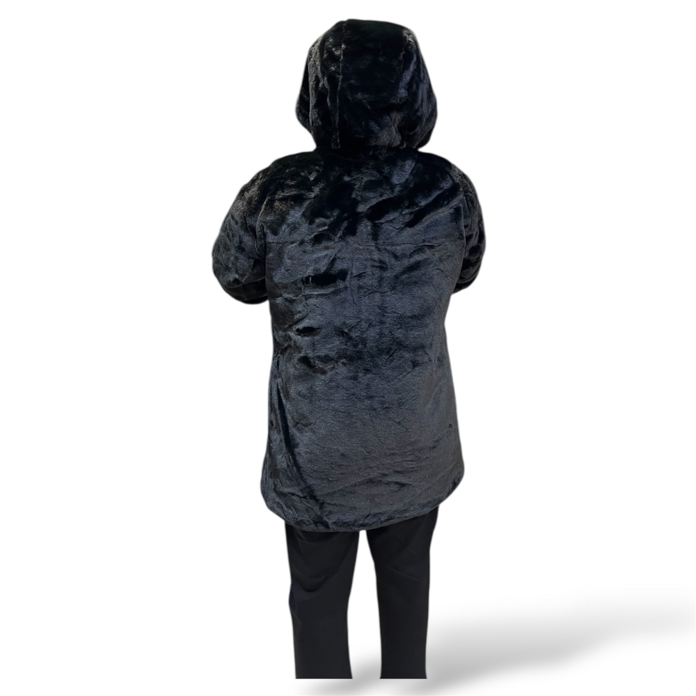 Verde Κοντό Γούνινο Παλτό με κουκούλα 33-0692 Black