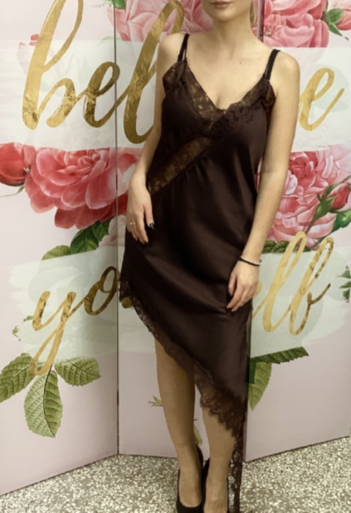Lingerie σατέν ασύμμετρο φόρεμα 7838 Brown
