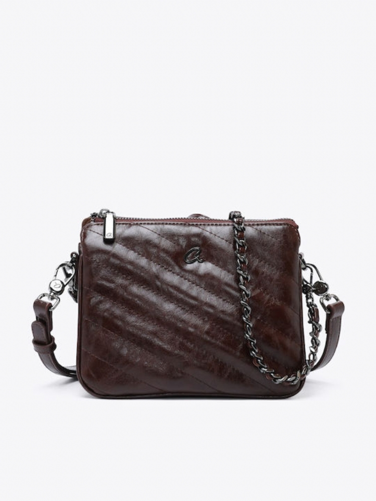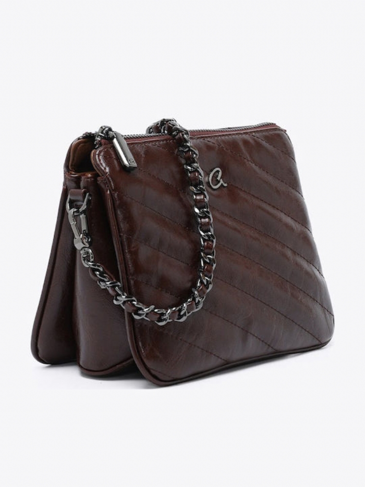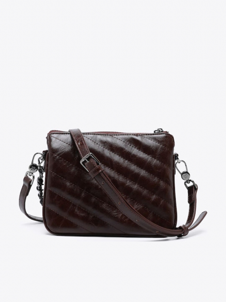 Γυναικεία τσάντα χιαστί Valeria, κατασκευασμένη από τεχνόδερμα με ραφές.