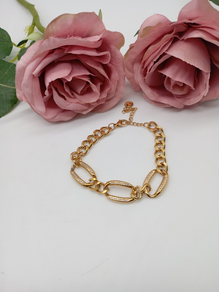 Βραχιόλι ατσάλινο χρυσό με στρασάκια 53183 Gold