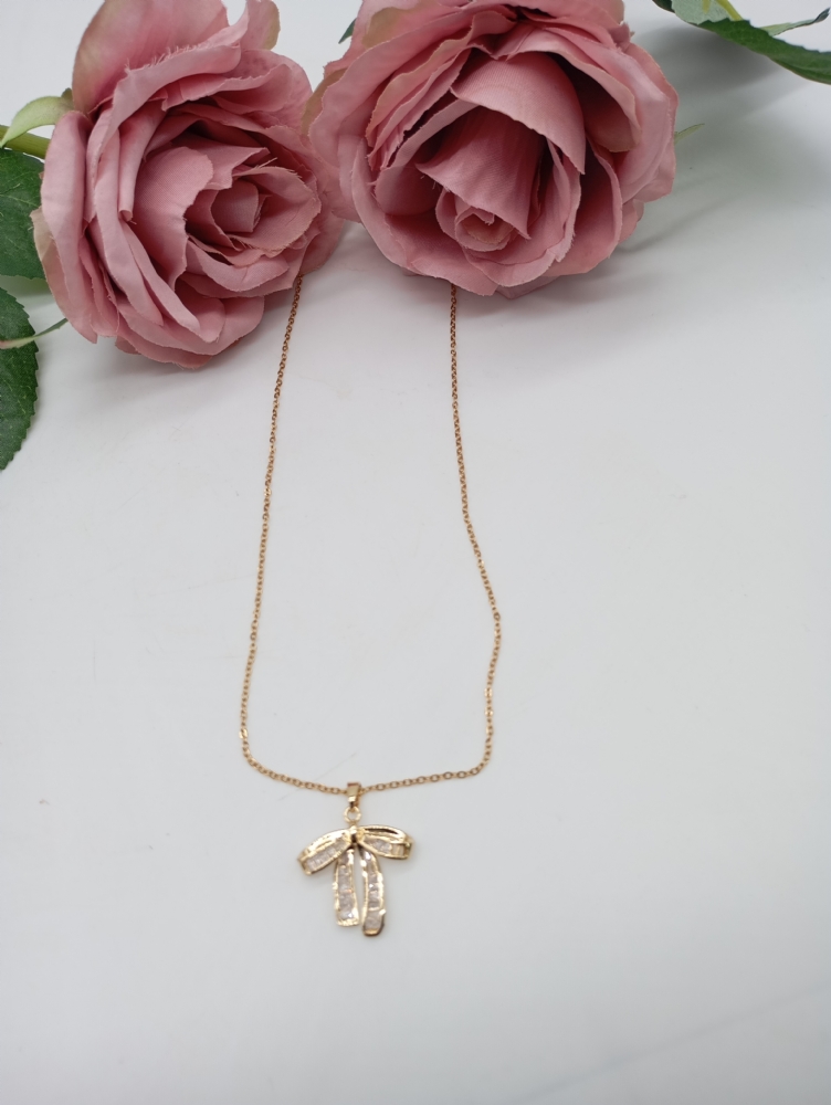 Ασημί ατσάλινο κολιέ Φιόγκος με στρασάκια
