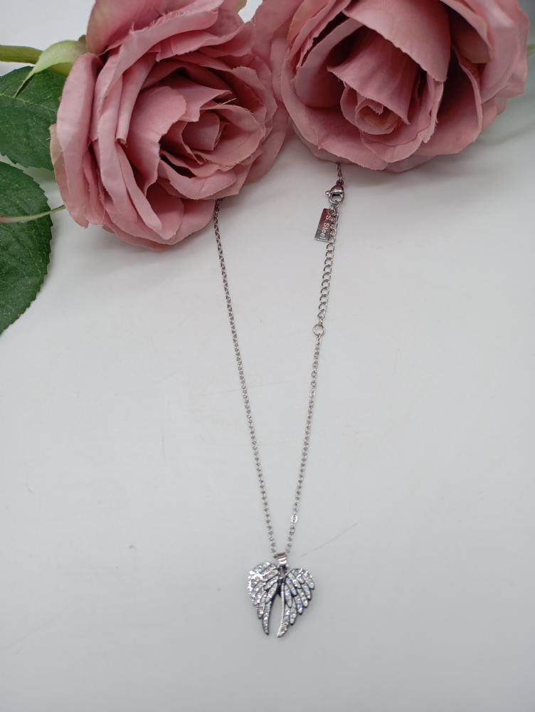 Κολιέ ατσάλινο Φτερά αγγέλου με στρασάκια 58232 Silver