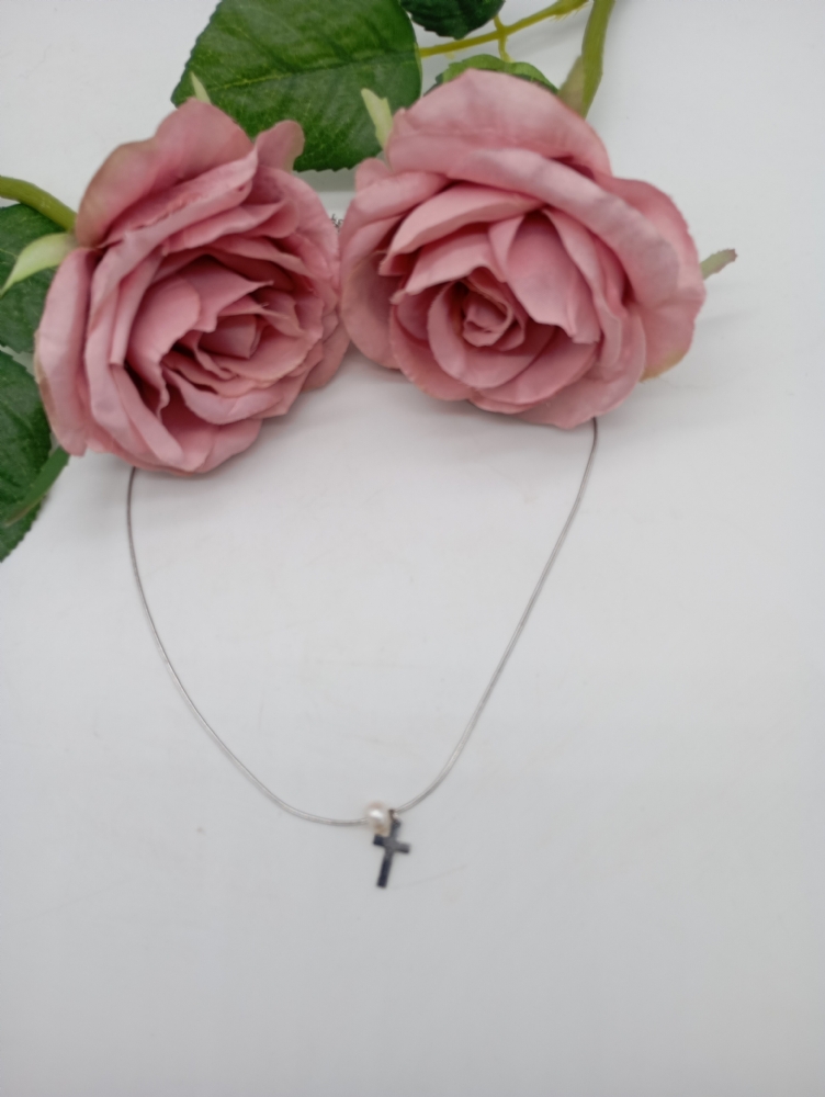Κολιέ ατσάλινη αλυσίδα σε σχήμα Σταυρού με πέρλα 344799 Silver