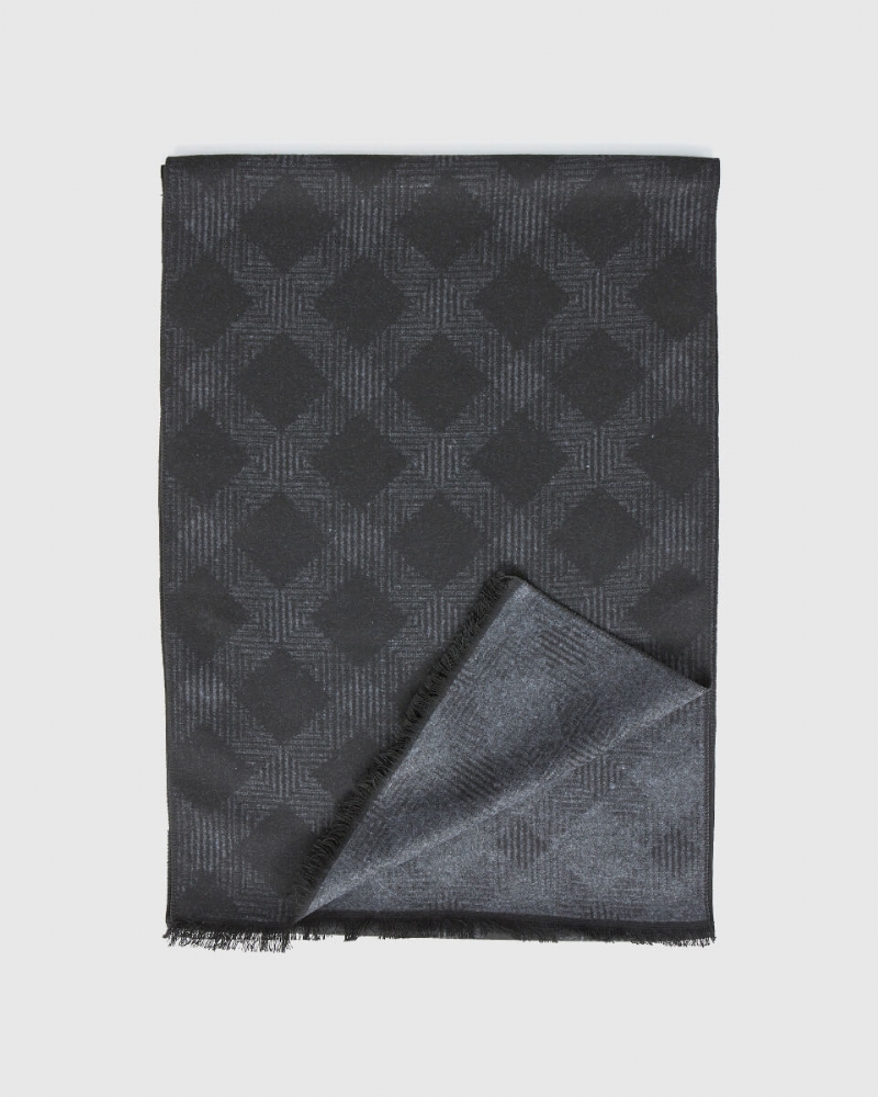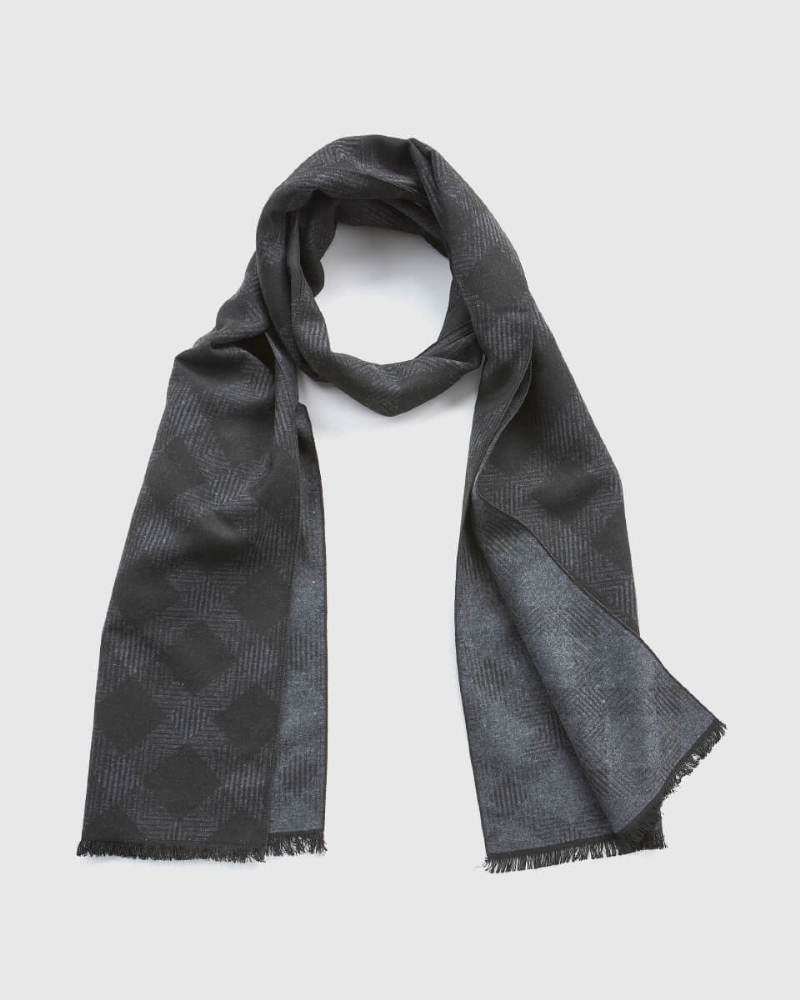 Ανδρικό κασκόλ σε μαύρο χρώμα με γκρι λεπτομέρειες