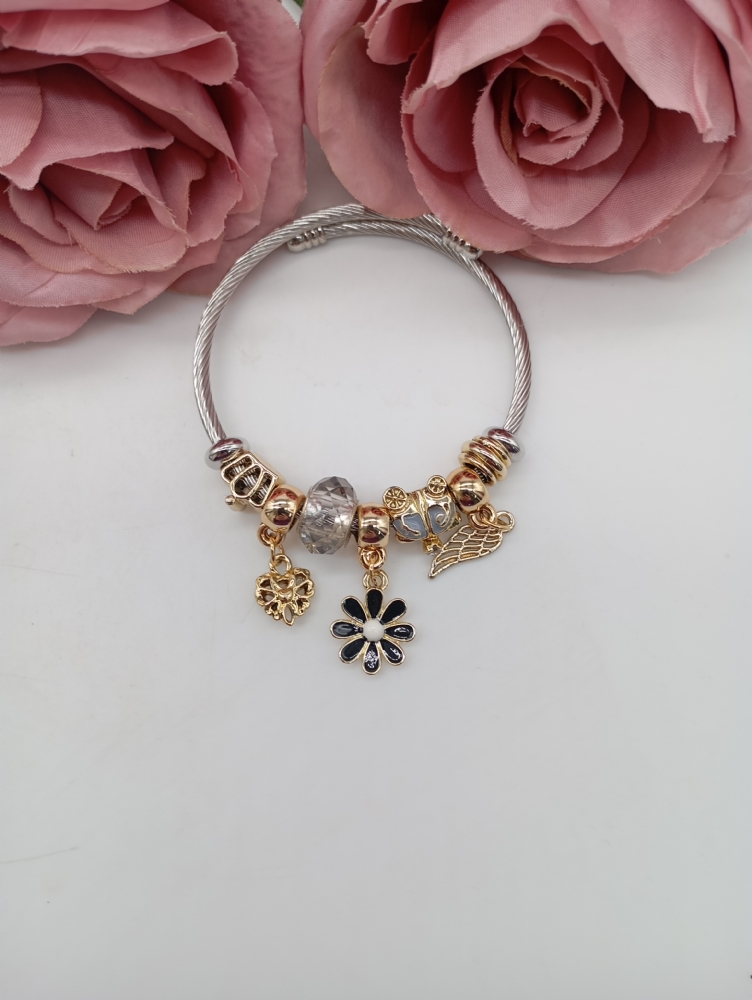 Βραχιόλι Stainless Steel Charms λουλούδι, φτερό , καρδούλα και διαφανή χάντρα 36915