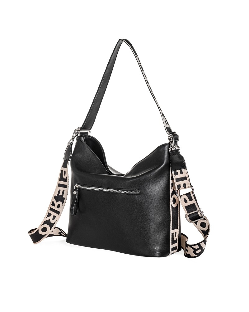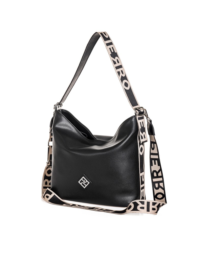 Μοντέρνα τσάντα ώμου από τη σειράStrap της Pierro Accessories, με φαρδύ ιμάντα με το logo PIERRO.