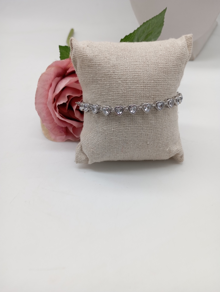 Βραχιόλι ατσάλινο ασημί με καρδούλες 9772 Silver