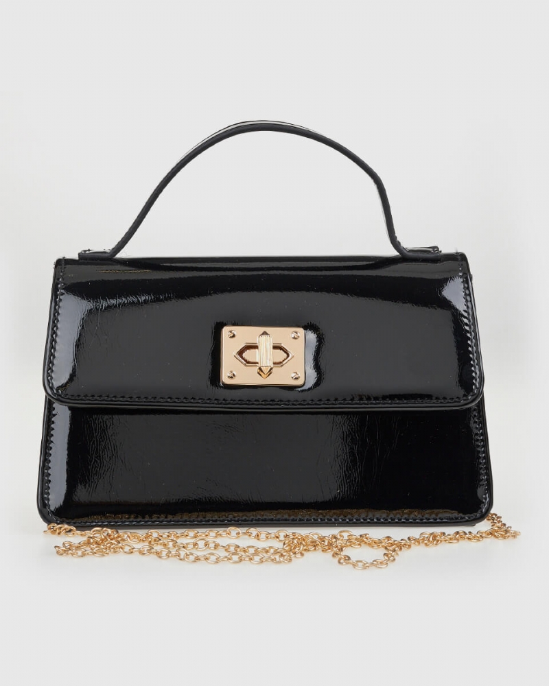 Γυναικεία τσάντα χειρός από συνθετικό δέρμα με κομψό τετράγωνο σχήμα και μεταλλικό κούμπωμα στο κλείσιμο.