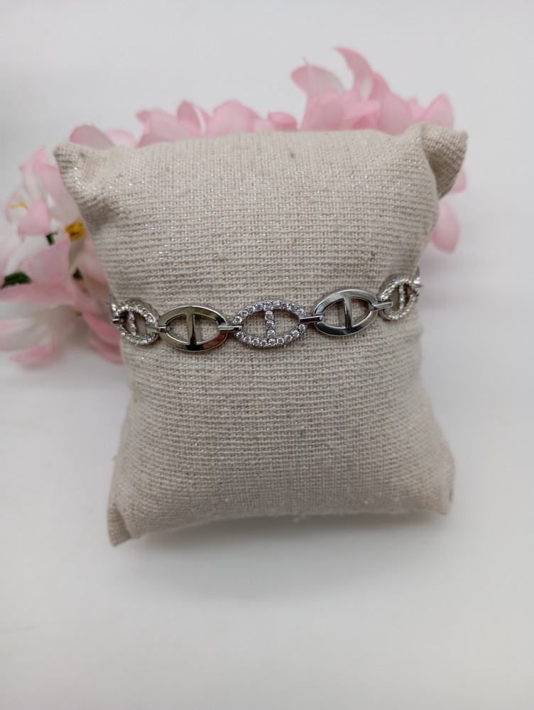 Βραχιόλι ατσάλινο χρυσό με οβάλ κρίκους και στρας 6037 Silver