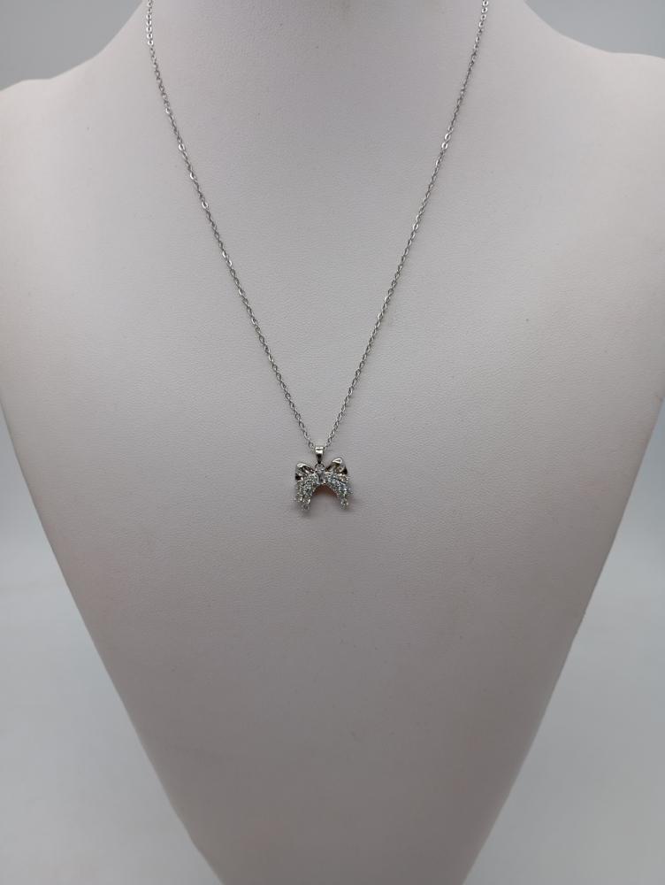 Κολιέ ατσάλινο ασημί Φιόγκος και λαμπερές πέτρες 0715 Silver