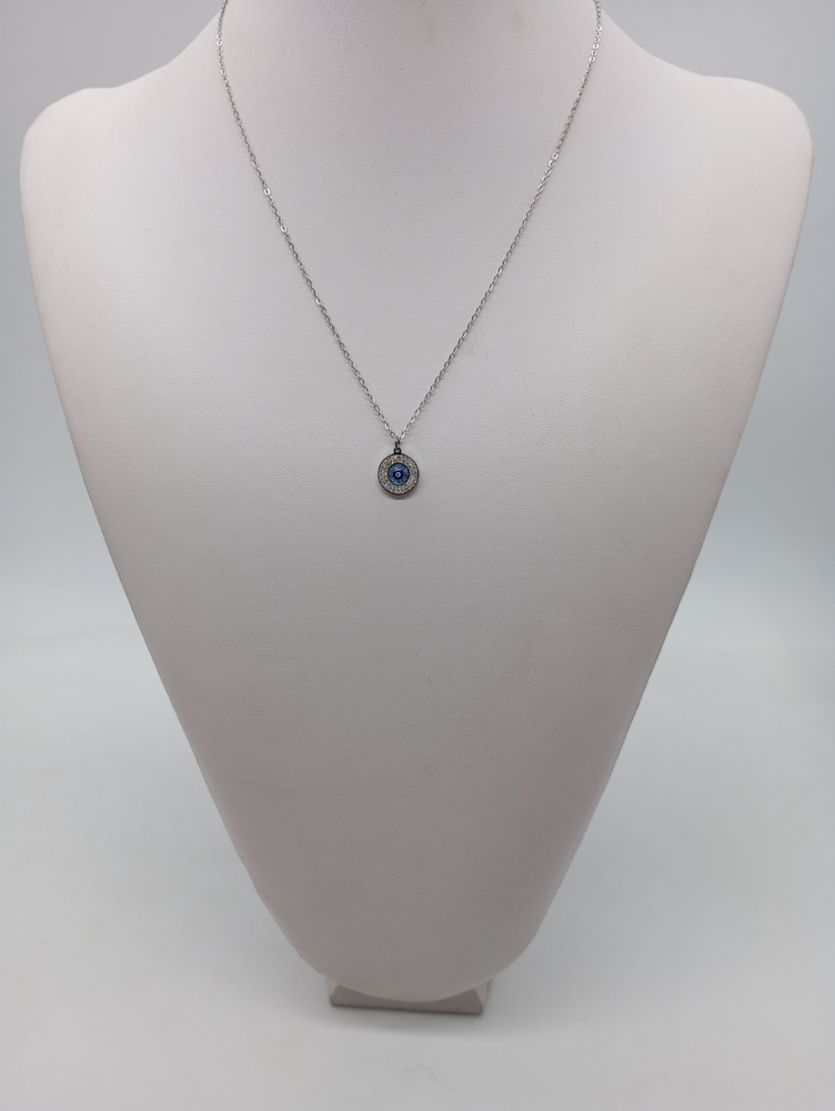 Κολιέ ατσάλινο Ματάκι με στρασάκια μπλε 0275 Silver
