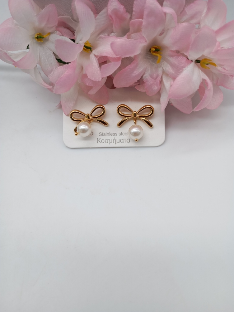 Σκουλαρίκια ατσάλινα Φιόγκος με πέρλα 1592 Gold