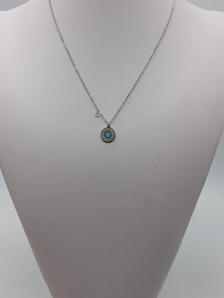 Κολιέ ατσάλινο εντυπωσιακό Ματάκι με στρασάκια 3578 Silver
