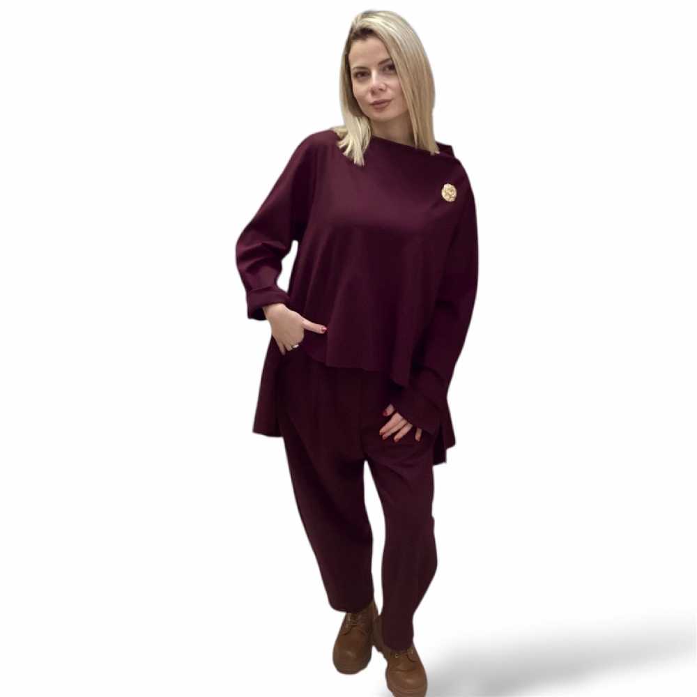 Σετ ασύμμετρη μπλούζα με καρφίτσα και παντελόνι baggy Bordeaux : 1