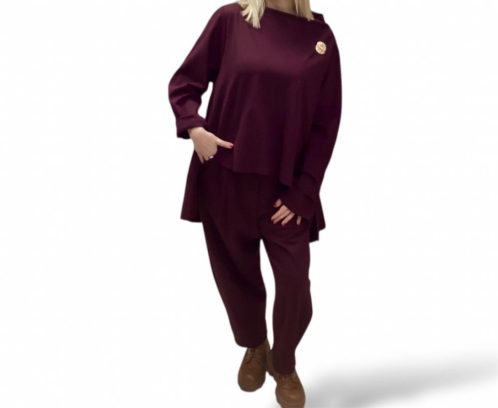 Σετ ασύμμετρη μπλούζα με καρφίτσα και παντελόνι baggy Bordeaux