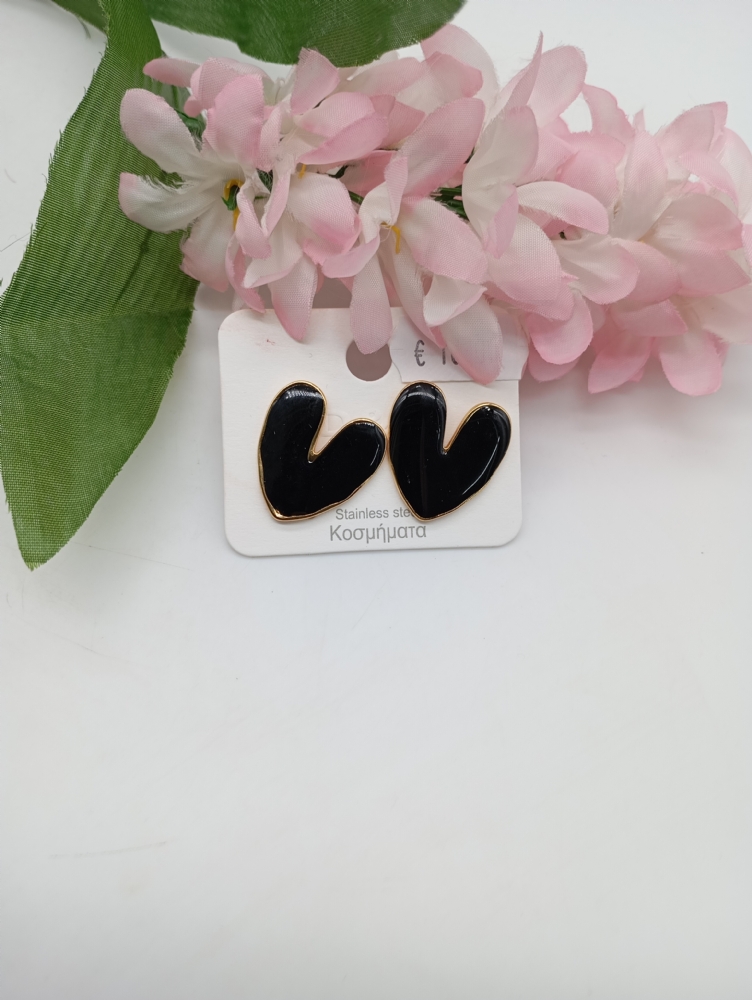 Σκουλαρίκια χρυσά ατσάλινα καρφωτά Μαύρες Καρδιές 4810 Black : 1
