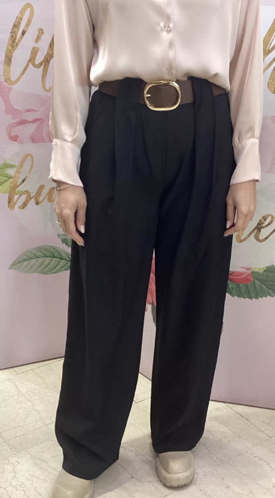 Παντελόνα γυναικεία με λάστιχο και ζωνή στη μέση YS 90444 Black