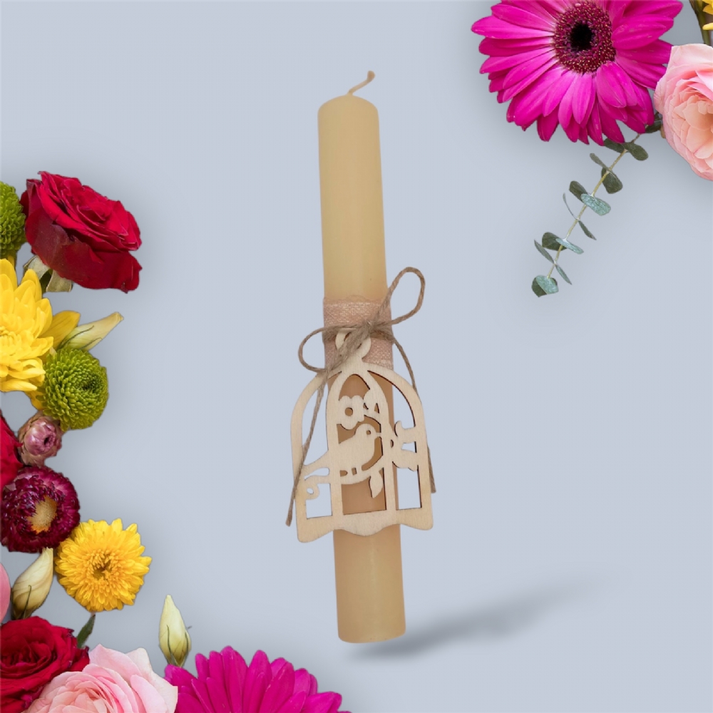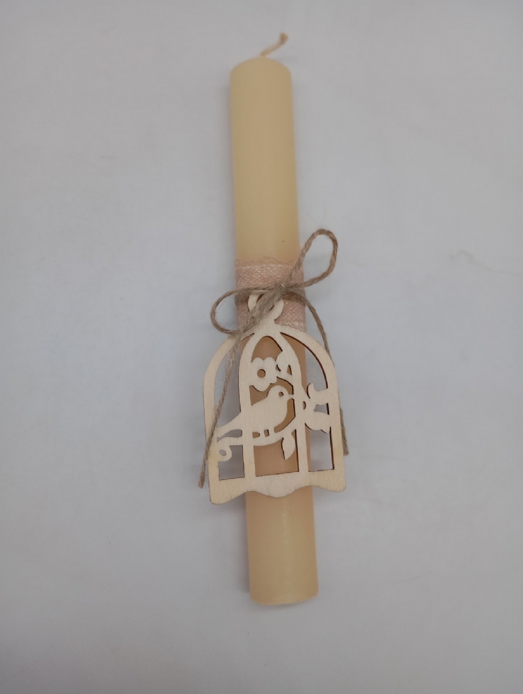 Λαμπάδα κυλινδρική με ξύλινο διακοσμητικό LA1202 Μπεζ