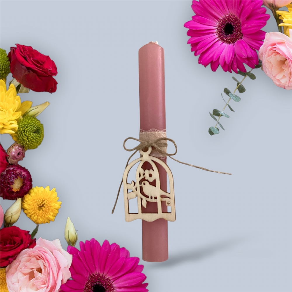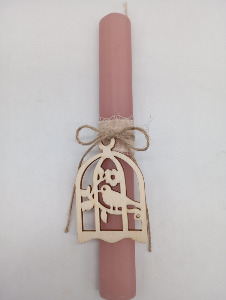 Λαμπάδα κυλινδρική με ξύλινο διακοσμητικό LA1202 Dusty pink : 1