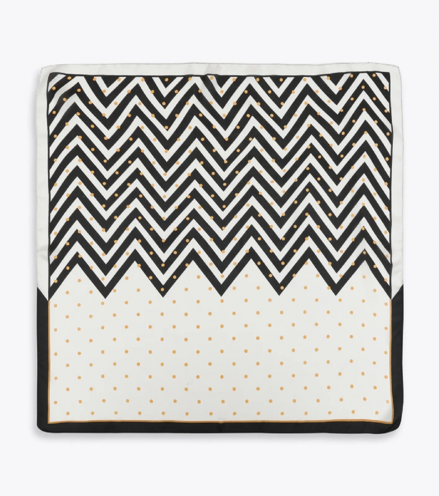 Γυναικείο μαντήλι πουά, με ζιγκ ζαγκ σχέδιο και δίχρωμο περίγραμμα.