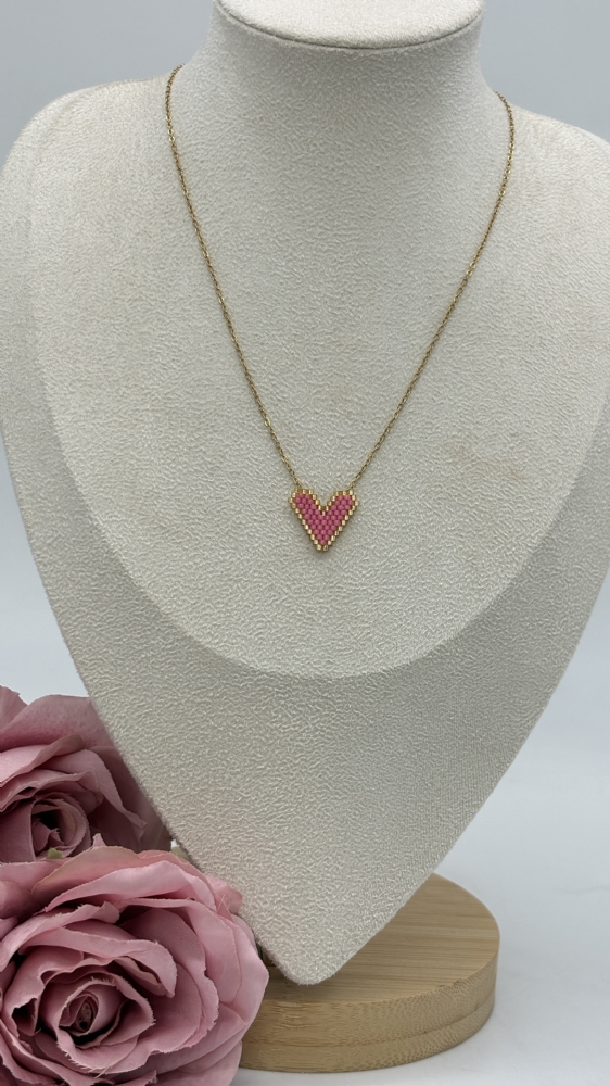 Κολιέ ατσάλινο καρδούλα απο Χάντρες 1215 Pink