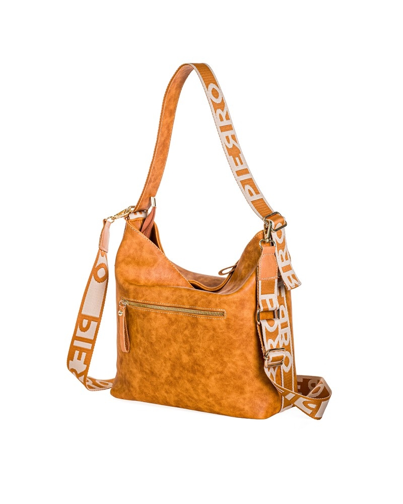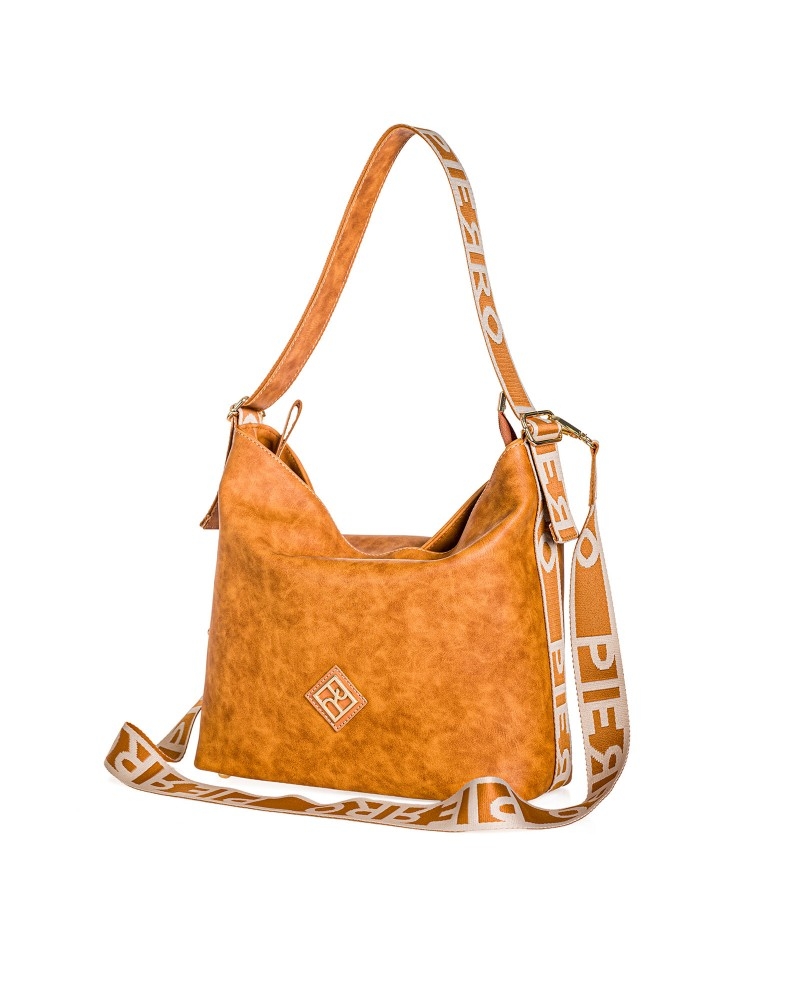 Μοντέρνα τσάντα ώμου από τη σειράStrap της Pierro Accessories, με φαρδύ ιμάντα με το logo PIERRO.