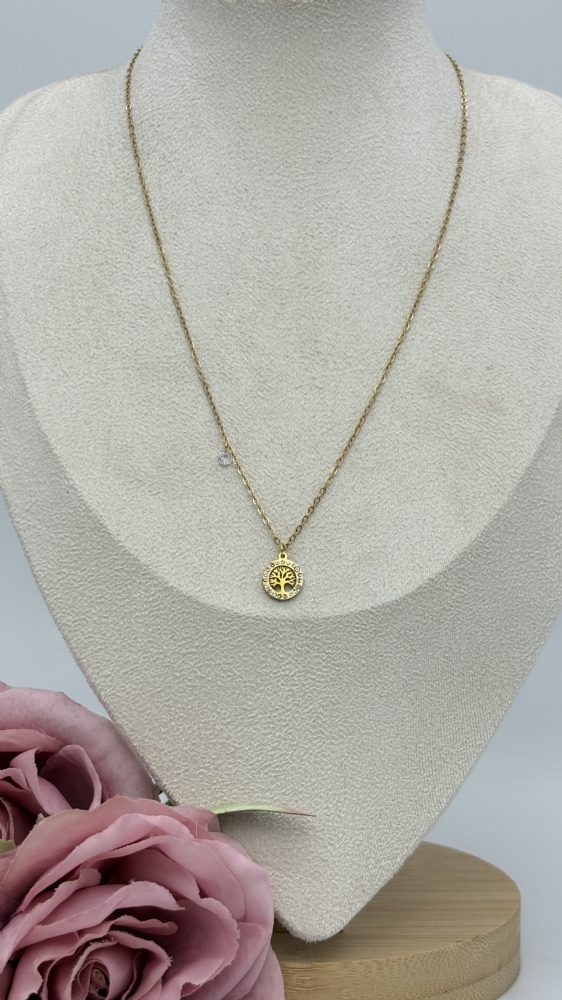 Κολιέ ατσάλινο δέντρο της ζωής με στρασάκια 1218 Gold