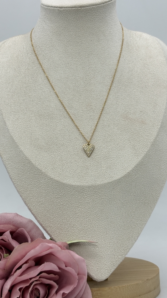 Κολιέ ατσάλινο καρδούλα με στρασάκια 1220 Gold