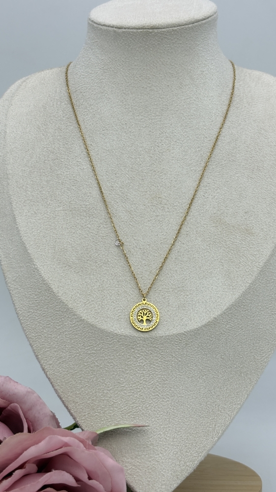 Κολιέ ατσάλινο δέντρο της ζωής με στρασάκια 1222 Gold
