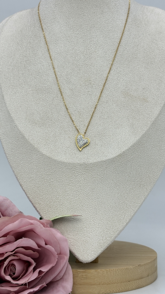Κολιέ ατσάλινο καρδούλα με στρας 1225 Gold