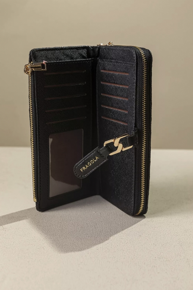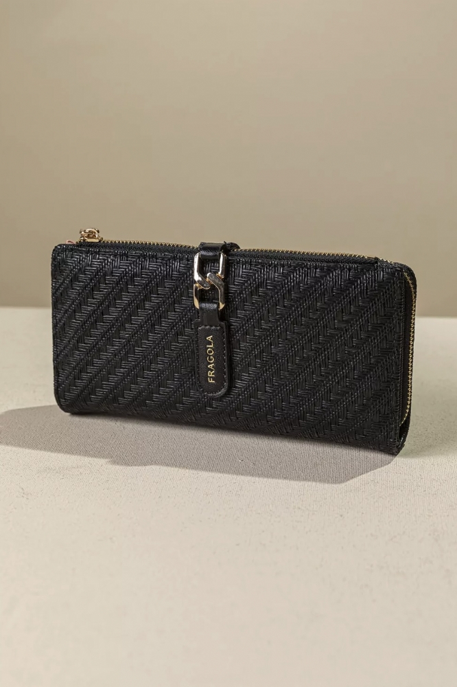 Fragola Μεγάλο πολυθέσιο γυναικείο πορτοφόλι PC398-black-straw