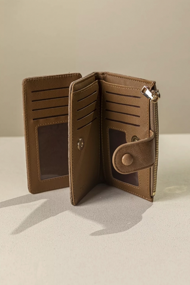 • Κλείνει με γλώσσα και μπουτόν για μεγαλύτερη ασφάλεια, ενώ διαθέτει και ανεξάρτητη θήκη με φερμουάρ για κέρματα.