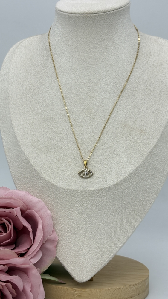 Κολιέ ατσάλινο Ματάκι οβάλ με στρασάκια 1238 Gold