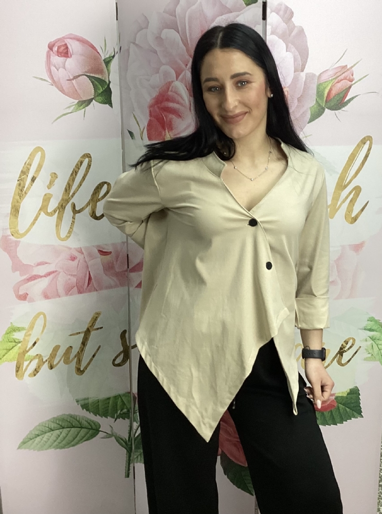 Πουκάμισο ασύμμετρο ελαστικό με βαμβάκι 04911 BEIGE