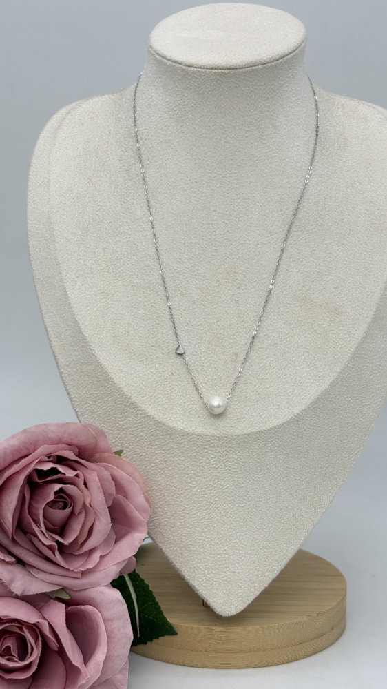 Κολιέ ατσάλινο με πέρλα 1254 Silver