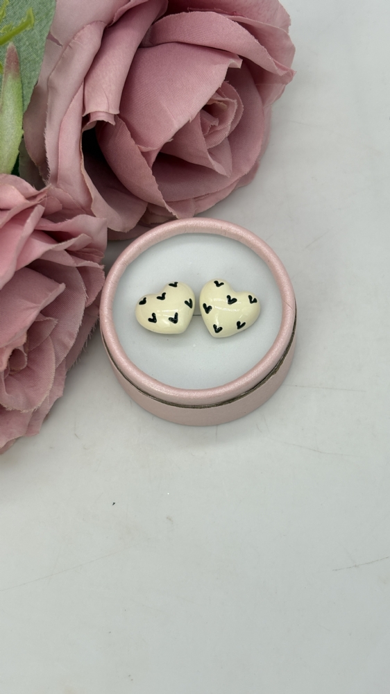 Σκουλαρίκια καρφωτά με καρδούλες μαύρες 1103 Μ.Gold
