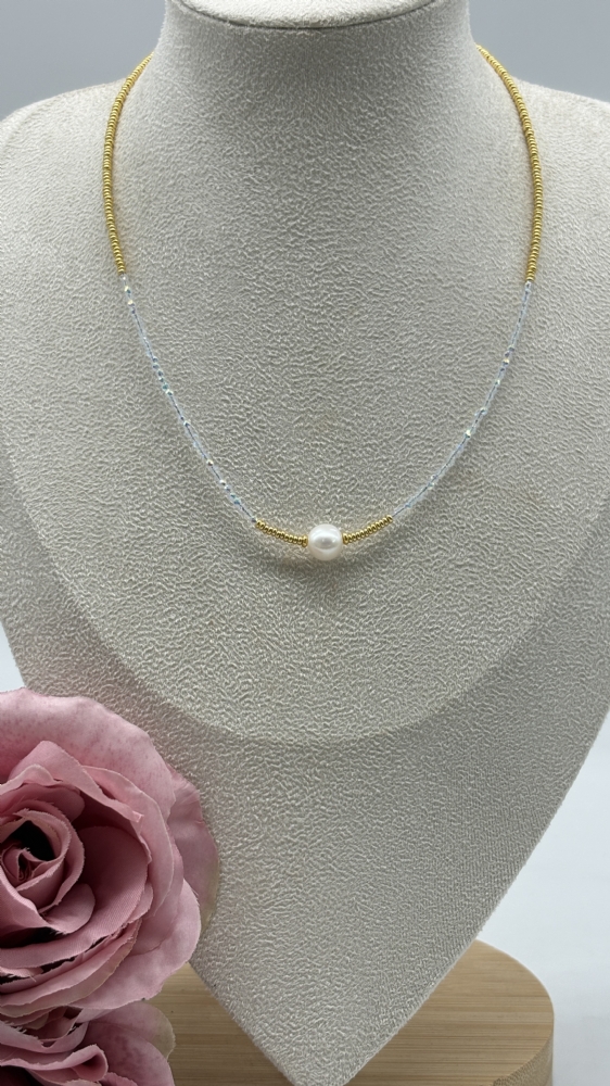 Κολιέ ατσάλινο χειροποίητο σχέδιο με πέρλα RH3001 Gold