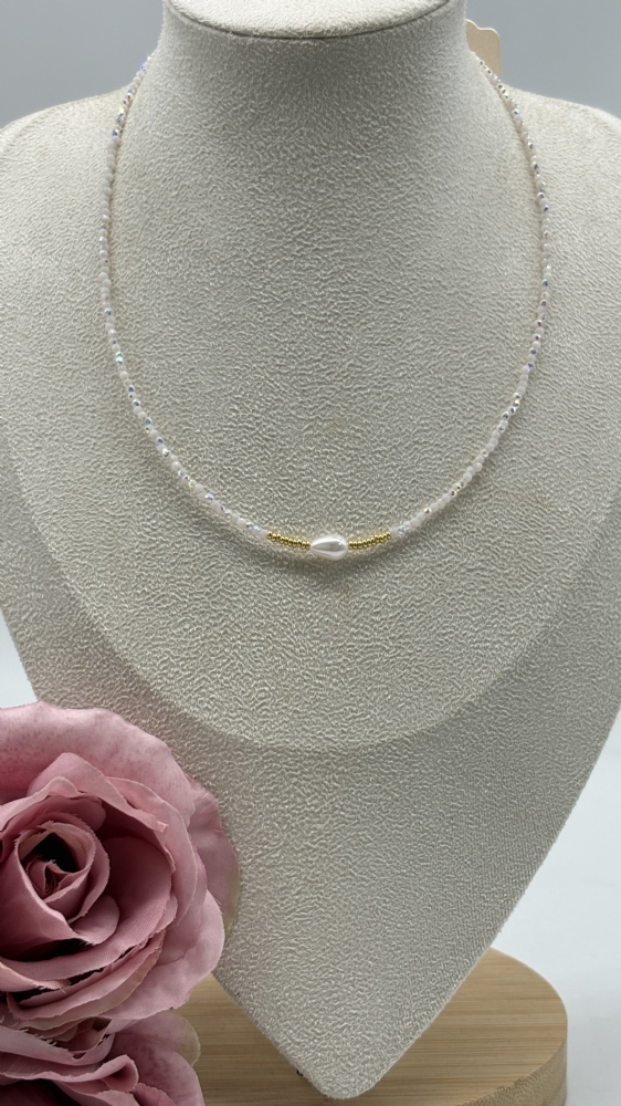Κολιέ ατσάλινο χειροποίητο σχέδιο με πέρλα  RH3002 Gold : 1