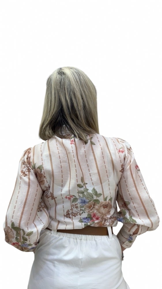 Πουκάμισο με λουλούδια 3174 Εκρού