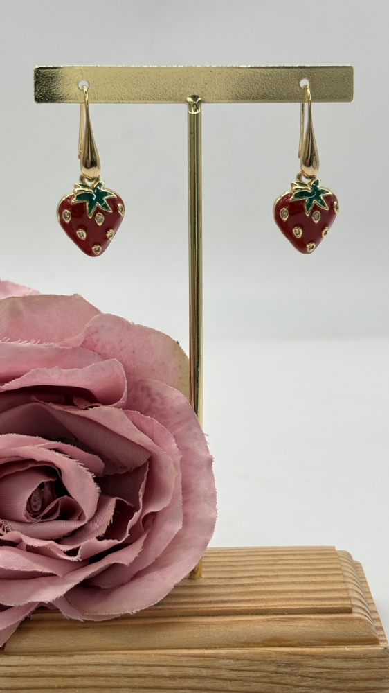 Σκουλαρίκια κρεμαστά φράουλες 4004 gold