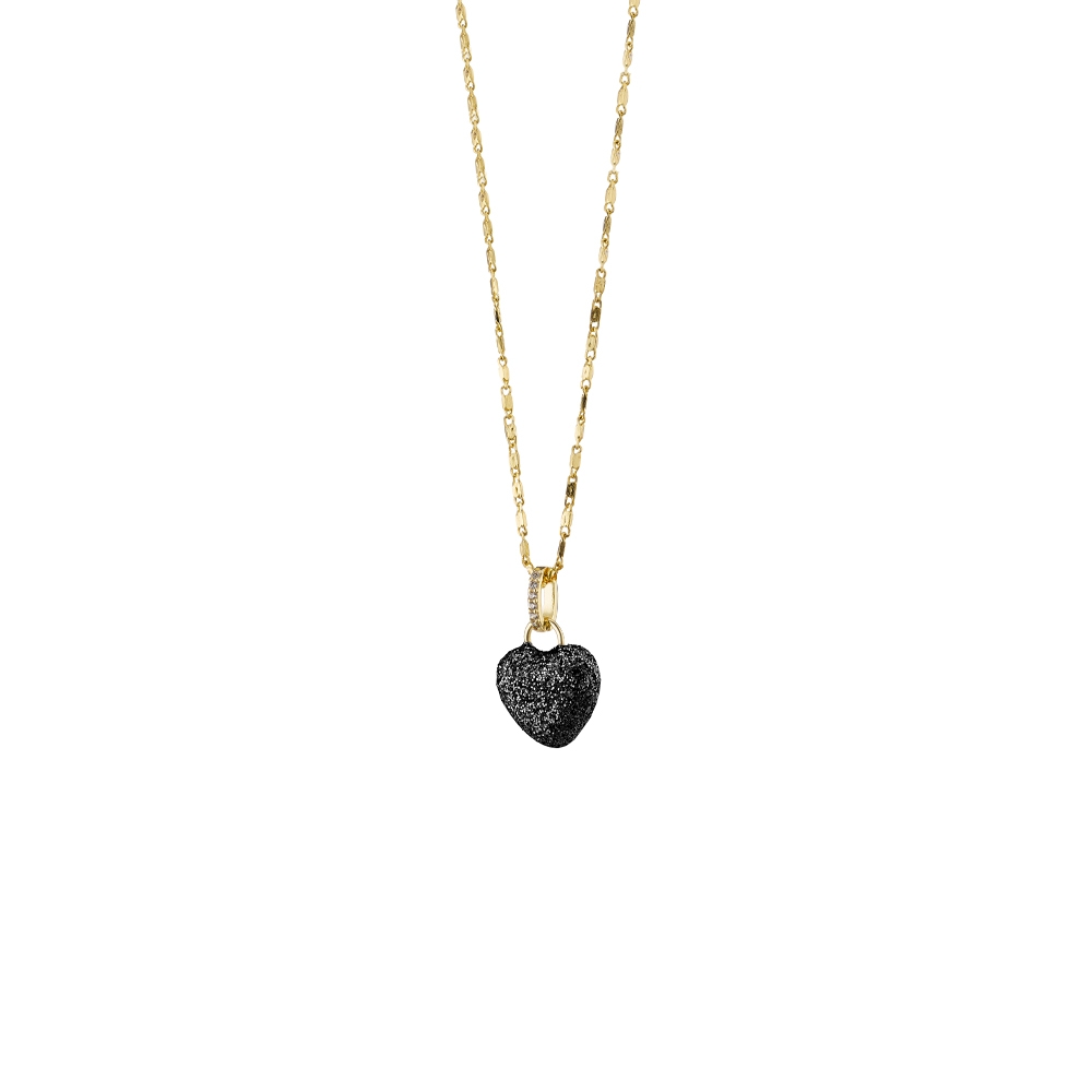 Κολιέ Starstruck μεταλλικό επίχρυσο με καρδιά και μαύρο glitter