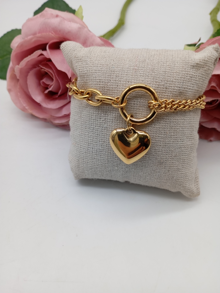 Βραχιόλι ατσάλινο με Χρυσή Καρδιά 2797 Gold