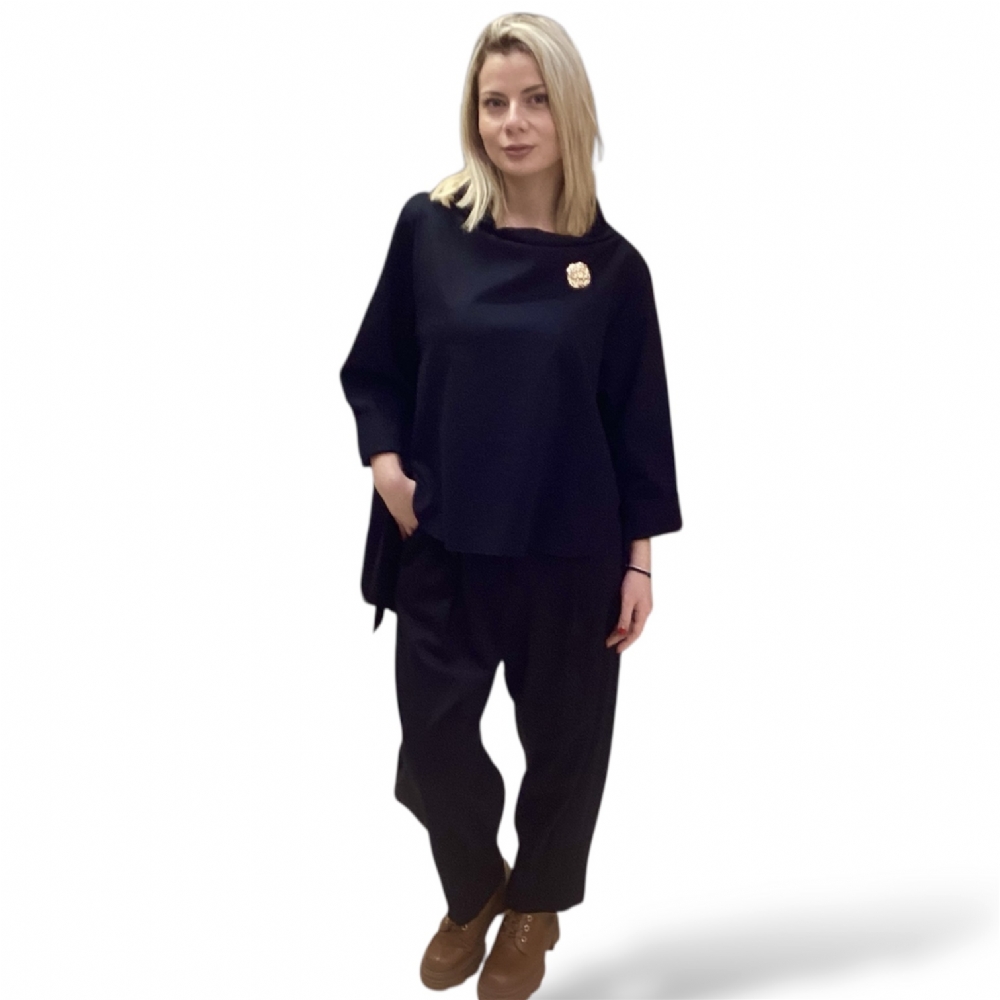 Σετ ασύμμετρη μπλούζα με καρφίτσα και παντελόνι baggy Black : 1