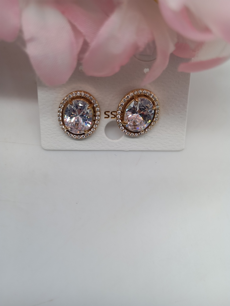 Σκουλαρίκια καρφωτά στρόγγυλα με αστραφτερή πέτρα και στρασάκια 4718 Gold