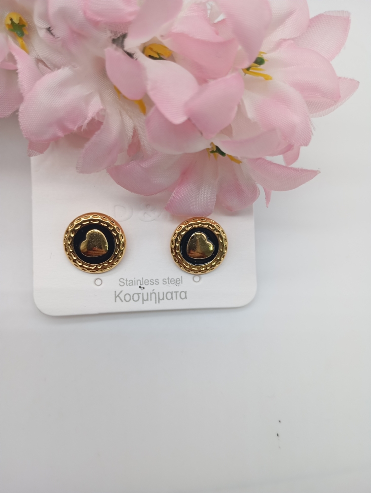 Σκουλαρίκια καρφωτά στρόγγυλα με καρδιά 3865 Black