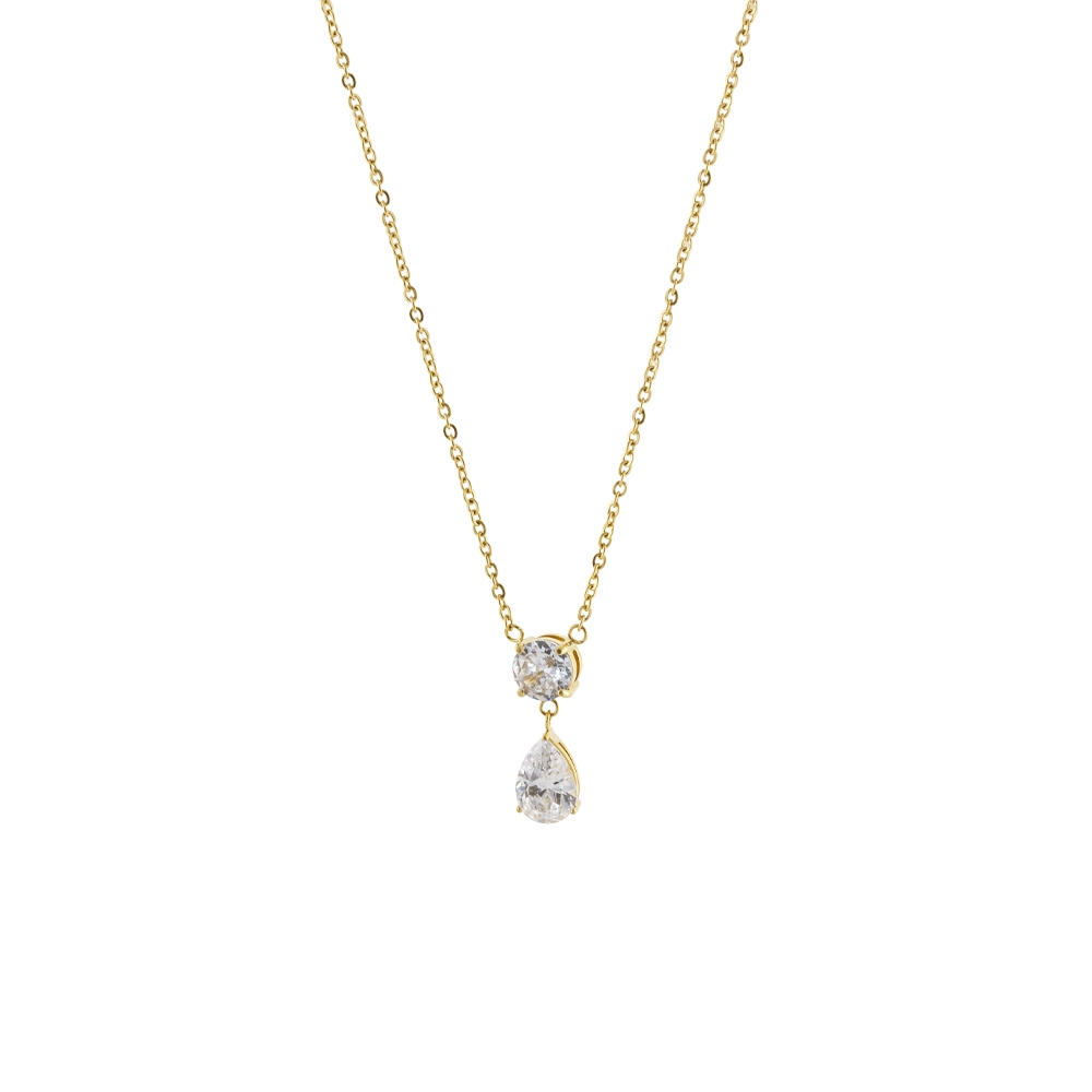 Κολιέ Happy Hearts ατσάλινο επίχρυσο με δύο λευκά ζιργκόν
