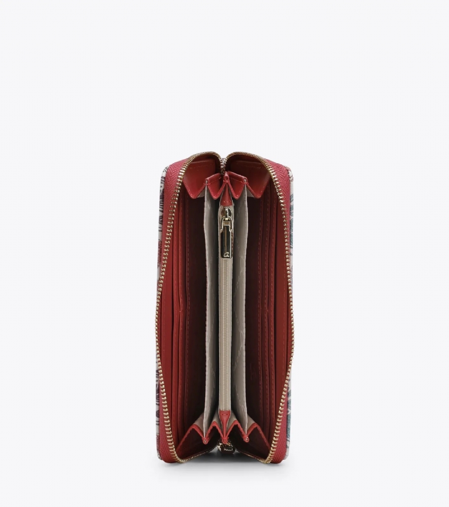 Διαθέτει πολλαπλές θέσεις για χαρτονομίσματα και κάρτες και θήκη με φερμουάρ για νομίσματα.